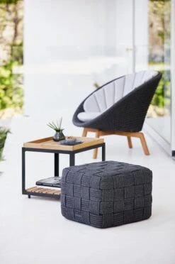Cane-linen Cube-rahi on täydellinen monitoimikaluste sohvaryhmän täydentäjäksi terassille tai lepotuolin kaveriksi parvekkeelle. Rahin sisus on nopeasti kuivuvaa vaahtomuovia, ja se on verhoiltu tyylikkäällä ja kestävällä, käsityönä kudotulla Cane-line Soft Rope -kankaalla, joka sopii sekä sisä- että ulkokäyttöön – voit siis lepuuttaa jalkojasi Cuben päällä niin olohuoneessa kuin puutarhassakin.