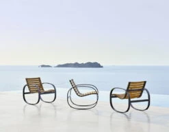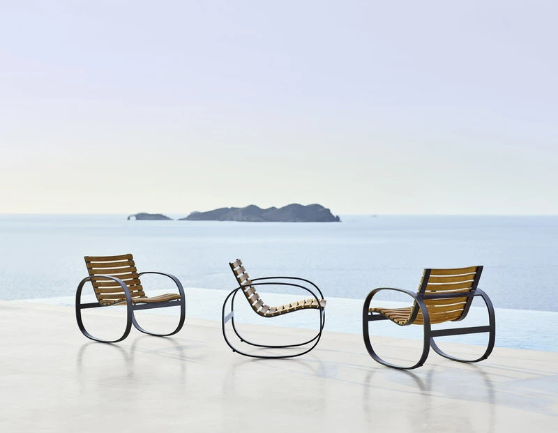 Cane-linen Parc-keinutuoli on suunniteltu mukavuus edellä: sen puinen istuinosa on taivutettu mukailemaan ihmiskehon muotoja. Foersom & Hiort-Lorenzenin suunnittelema moderni keinutuoli on valmistettu luonnollisen kauniista, käsittelemättömästä tiikkipuusta, joka ajan myötä saa ylleen kauniin hopeanharmaan patinan. Keinutuolin molemmin puolin kiertää alumiininen kehä, josta muodostuvat sekä keinutuolin käsinojat että jalakset. Parc-keinutuoli sopii niin sisäkäyttöön kuin ulos parvekkeelle, terassille tai puutarhaan.