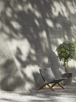 Carl Hansen & Sønin ulkokäyttöön sopiva MG501 Cuba outdoor -nojatuoli edustaa funktionaalisten huonekalujen aatelia. Morten Gøttlerin vuonna 1997 suunnittelema tuoli on täydellinen sekoitus veistoksellisia muotoja ja toiminnallisuutta: äärimmäisen sirossa lepotuolissa on kokopuinen, taitettava runko sekä aikaa ja vaihtelevia sääolosuhteita kestävä, miellyttävästi joustavasta flat rope -narusta punottu istuin. Patina taikoo vuosien vieriessä Cuba-lepotuolista entistäkin charmikkaamman, sillä tiikistä valmistettu runko harmaantuu arvokkaasti vanhetessaan.