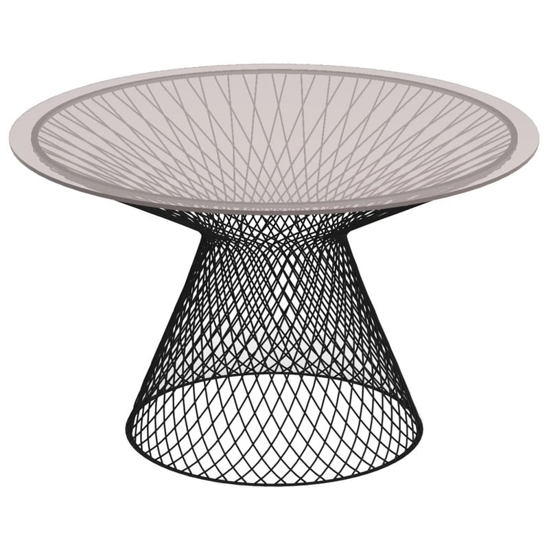 Emun Heaven-pöydän pysäyttävä muotoilu syntyy ilmavan teräskudosrungon ja läpinäkyvän lasikannen luomasta henkäyksen kevyestä vaikutelmasta. Jean-Marie Massaudin suunnitteleman pöydän harmoninen ja elegantti ilme sopii monenlaiseen sisustukseen niin ulkona kuin sisällä.