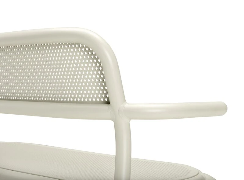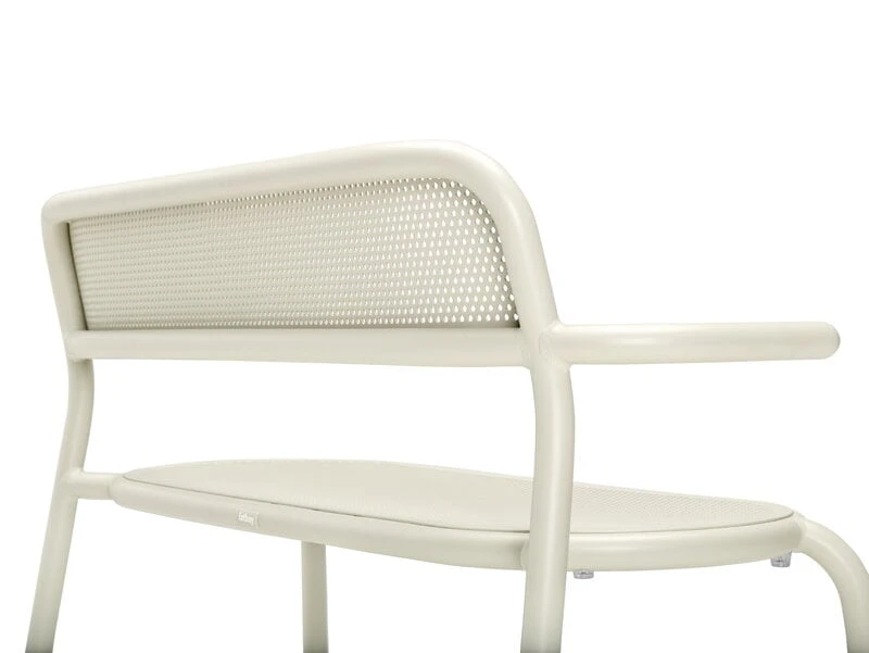 Fatboyn Tonà Bankski -penkin muotoilussa on viittauksia sekä rakennusteollisuuteen että klassisiin kahvilakalusteisiin: penkin putkimainen runko muistuttaa suojakaaria, kun taas rei’itetty selkänoja ja istuin tuovat mieleen perinteiset wieniläistuolit.