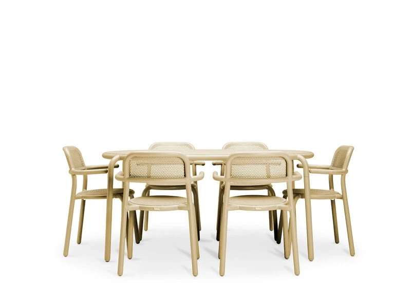 Fatboyn Toní Tavolo on ihanteellinen ruokapöytä vaikkapa kesämökin terassille; suurikokoisen, korkeussäädettävän ulkopöydän ääreen mahtuu mukavasti istumaan jopa 6 henkilöä. Toní Tavolo -pöydän keskellä on irrotettava reikä aurinkovarjoa varten, joten se soveltuu erinomaisesti myös kahvilan tai baarin terassipöydäksi.