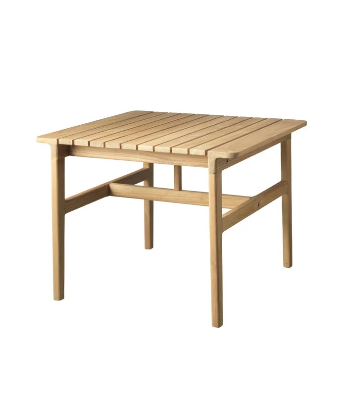 FDB Møblerin Sammen-sohvapöytä kutsuu nauttimaan auringosta sekä valoisista kesäilloista ulkona kaupunkikodin parvekkeella ja kesämökin pihamaalla. Korkeampi puinen terassipöytä on täydellinen seuralainen sohvalle tai nojatuoleille myös vaikkapa puutarhan oleskelualueella tai rantasaunan terassilla.