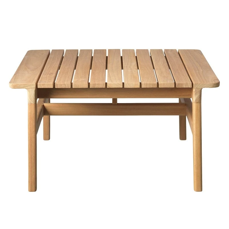 FDB Møblerin Sammen-sohvapöytä kutsuu nauttimaan auringosta sekä valoisista kesäilloista ulkona kaupunkikodin parvekkeella ja kesämökin pihamaalla. Matala puinen terassipöytä on täydellinen seuralainen sohvalle tai nojatuoleille myös vaikkapa puutarhan oleskelualueella tai rantasaunan terassilla.