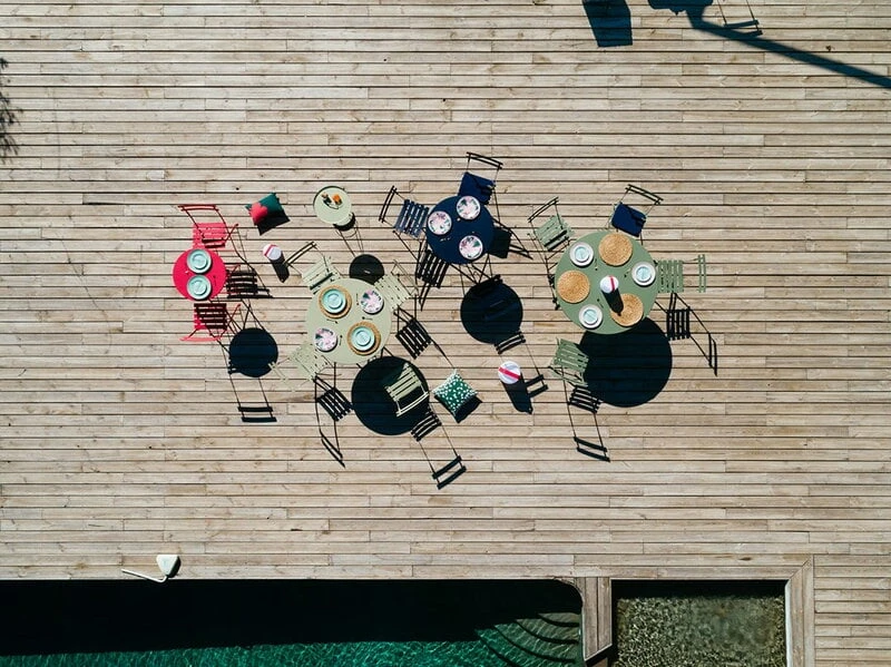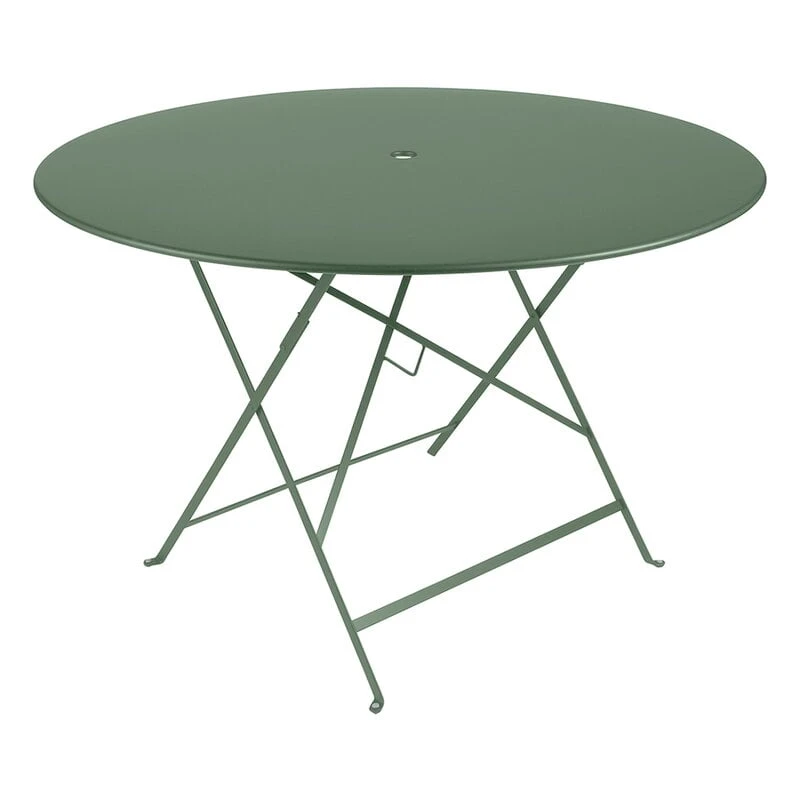 Fermobin kokoontaitettavat Bistro-pöydät ovat paitsi kauniita ja käteviä myös säänkestäviä – UV-suojatun maalipinnan ansiosta värit säilyvät kirkkaina vuodesta toiseen. Pöydässä on myös paikka auringonvarjolle. Fermob-ulkokalusteet valmistetaan Fermobin omalla tehtaalla Ranskassa, ja jokaisesta Bistro-tuotteesta löytyy laadun takaava tarkastusmerkintä.