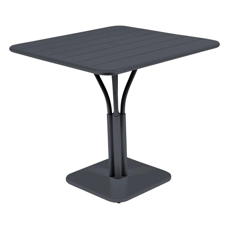 Fermobin Luxembourg-sarjan laippajalkainen pöytä on suunniteltu ulkokäyttöön, ja se sopiikin täydellisesti kaikkiin ulkotiloihin aina kaupunkikodin parvekkeelta kesämökin pihamaalle. Kestävästä mutta kevyestä alumiinista valmistetun terassipöydän kansi muodostuu alumiinisäleiköstä, jonka rakosista vesi pääsee kätevästi valumaan pois, ja sen laippajalka pysyy tukevasti pystyssä teräksisen lisäpainon ansiosta. Pöydän keskellä on myös paikka aurinkovarjolle. Luxembourg-pöydän ympärille mahtuu mukavasti 2-4 istujaa.