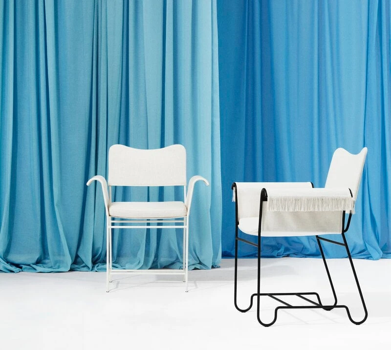 GUBIn Tropique-ulkotuoli henkii menneiden aikojen glamouria. Mathieu Matégotin vuonna 1951 suunnittelema tuoli muodostuu sirosta, leikkisästi kaartuilevasta teräsrungosta ja siihen rennosti pingotetusta istuimesta, jonka muoto tuo mieleen puiden välissä roikkuvan riippumaton. Tuoli on verhoiltu ulkokäyttöön suunnitellulla kankaalla, joka Matégotin alkuperäisestä designista poiketen on vaihdettavissa tehden tuolista entistäkin pitkäikäisemmän.