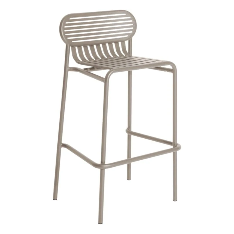 Week-end-baarituoli on osa ranskalaisen Petite Frituren alumiinisten ulkokalusteiden kokoelmaa. Viehättävien Weekend-tuolien tunnistettavimpiin piirteisiin kuuluvat niiden selkänojien ovaalinmuotoiset yksityiskohdat sekä vaaka- ja pystysuorien linjojen vuorottelu. Kaikki kokoelman tuolit ovat pinottavia.