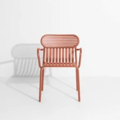 Week-end-tuoli on osa ranskalaisen Petite Frituren alumiinisten ulkokalusteiden kokoelmaa. Viehättävien Weekend-tuolien tunnistettavimpiin piirteisiin kuuluvat niiden selkänojien ovaalinmuotoiset yksityiskohdat sekä vaaka- ja pystysuorien linjojen vuorottelu. Kaikki kokoelman tuolit ovat pinottavia.