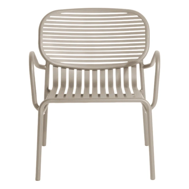 Week-end-nojatuoli on osa ranskalaisen Petite Frituren alumiinisten ulkokalusteiden kokoelmaa. Viehättävien Weekend-tuolien tunnistettavimpiin piirteisiin kuuluvat niiden selkänojien ovaalinmuotoiset yksityiskohdat sekä vaaka- ja pystysuorien linjojen vuorottelu. Kaikki kokoelman tuolit ovat pinottavia.