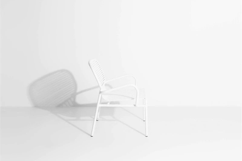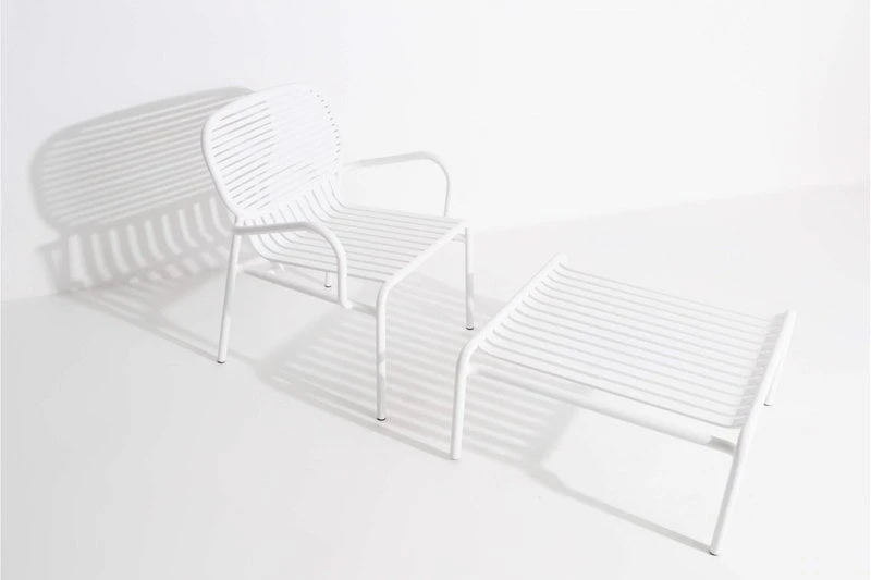 Week-end-nojatuoli on osa ranskalaisen Petite Frituren alumiinisten ulkokalusteiden kokoelmaa. Viehättävien Weekend-tuolien tunnistettavimpiin piirteisiin kuuluvat niiden selkänojien ovaalinmuotoiset yksityiskohdat sekä vaaka- ja pystysuorien linjojen vuorottelu. Kaikki kokoelman tuolit ovat pinottavia.