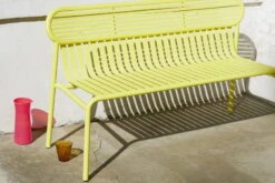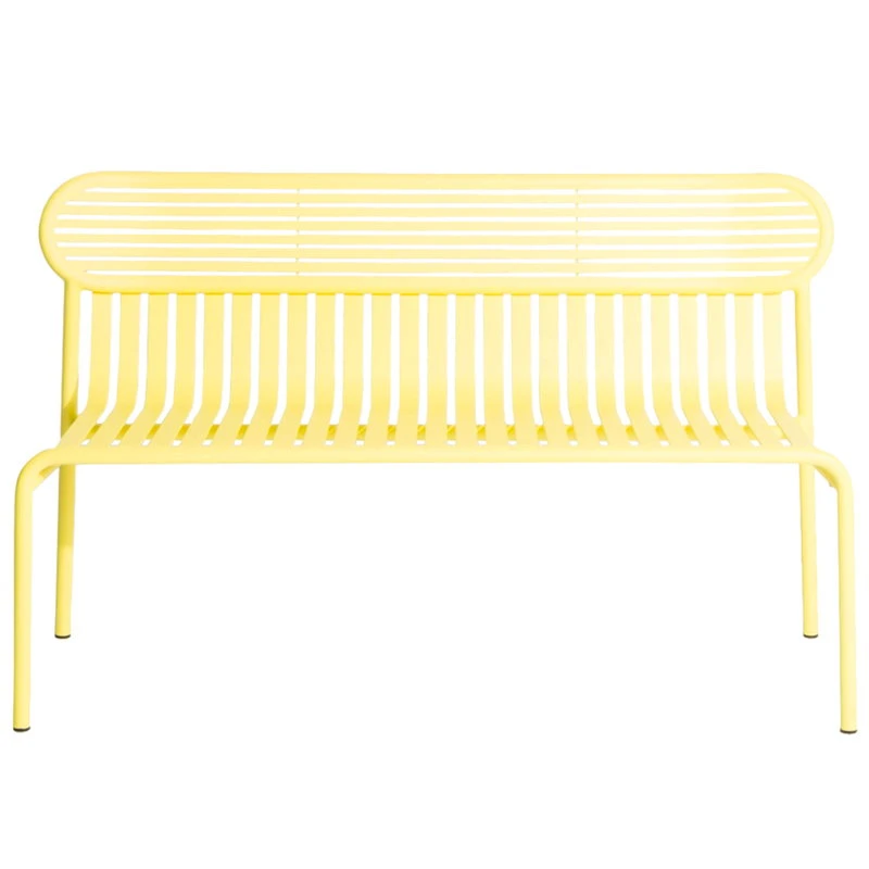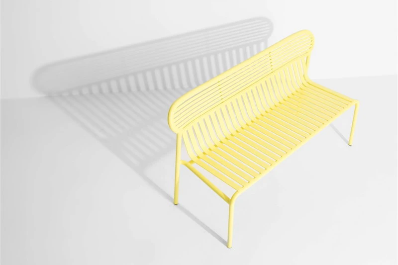 Week-end-penkki on osa ranskalaisen Petite Frituren alumiinisten ulkokalusteiden kokoelmaa. Week-end-penkin tunnistettavimpiin piirteisiin kuuluvat sen selkänojan ovaalinmuotoiset yksityiskohdat sekä vaaka- ja pystysuorien linjojen vuorottelu. Linjakkaasti muotoiltu, ulkokäyttöön suunniteltu penkki sopii sulavasti yhteen saman sarjan pöytien kanssa.