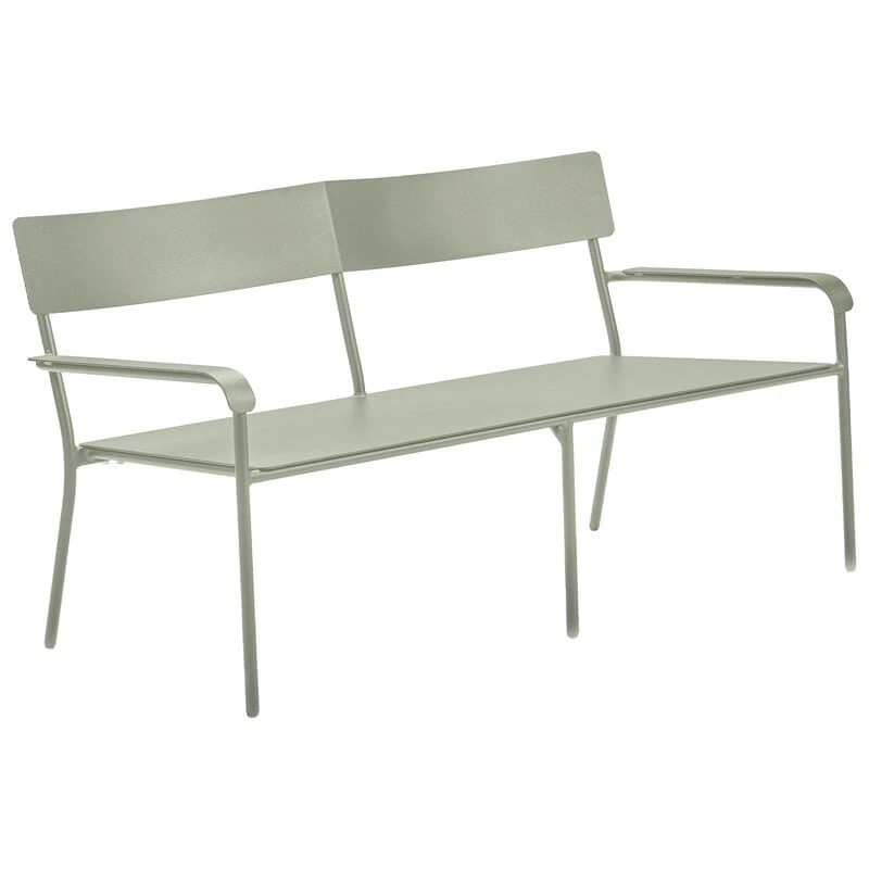 Seraxin kahden istuttava August-penkki on valmistettu jauhemaalatusta alumiinista, ja se sopii sekä sisä- että ulkokäyttöön. Tukevilla selkä- ja käsinojilla viimeistelty metallinen penkki soveltuu yhtä hyvin niin puutarhapenkiksi ulkona kuin ruokapöydän ääreen sisätiloissa.
