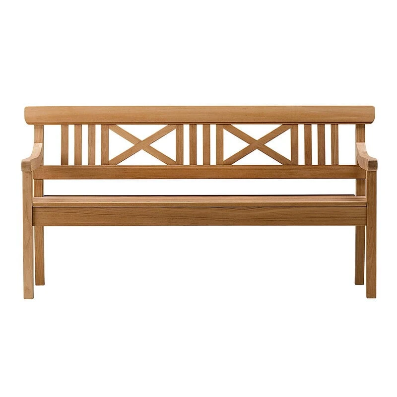 Skagerakin Drachmann-puutarhapenkki hurmaa klassisella muotokielellään sekä kauniisti vanhenevalla materiaalillaan. Puinen ulkopenkki on valmistettu laadukkaasta, kestävästi tuotetusta tiikkipuusta, joka muuttuu ajan myötä tyylikkään hopeanharmaaksi. Penkin leveys on 165 cm.