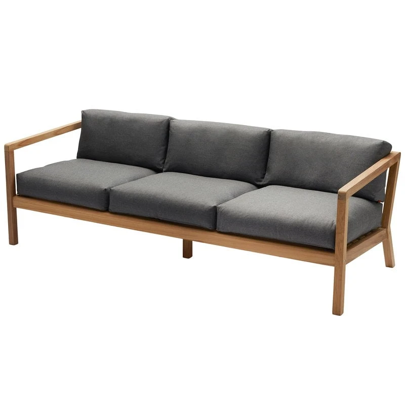 Skagerakin Virkelyst-ulkosohvan istuinmukavuus päihittää jopa monet sisätiloihin suunnitellut huonekalut! Pelkistetystä tiikkipuisesta rungosta ja muhkeista tyynyistä koostuva, kolmen istuttava Virkelyst-sohva on suunniteltu erityisesti ulkokäyttöön, ja siksi sen tyynyjen verhoilukangas on hyvin kestävä sekä vettä ja likaa hylkivä. Tyynyjen täytteenä käytetyt hypoallergeeniset Fossflakes-kuidut tunnetaan hengittävänä täytemateriaalina, joka pysyy hyvin muodossaan.