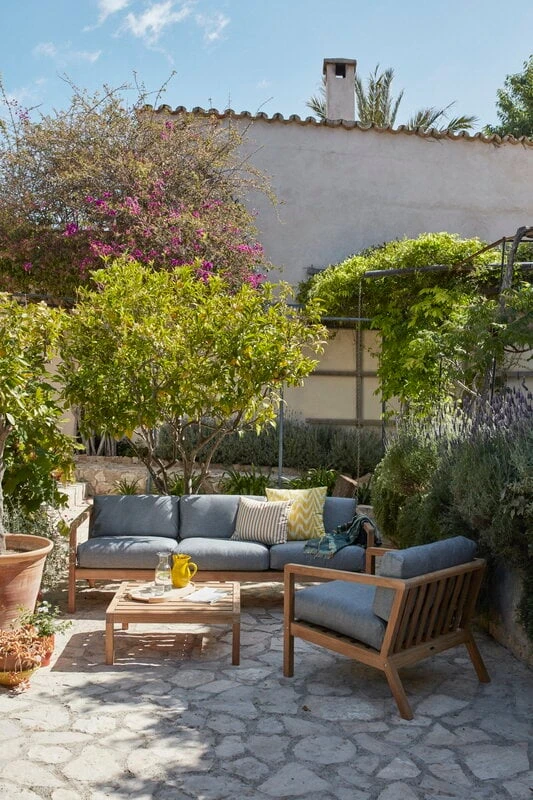 Skagerakin Virkelyst-ulkosohvan istuinmukavuus päihittää jopa monet sisätiloihin suunnitellut huonekalut! Pelkistetystä tiikkipuisesta rungosta ja muhkeista tyynyistä koostuva, kolmen istuttava Virkelyst-sohva on suunniteltu erityisesti ulkokäyttöön, ja siksi sen tyynyjen verhoilukangas on hyvin kestävä sekä vettä ja likaa hylkivä. Tyynyjen täytteenä käytetyt hypoallergeeniset Fossflakes-kuidut tunnetaan hengittävänä täytemateriaalina, joka pysyy hyvin muodossaan.