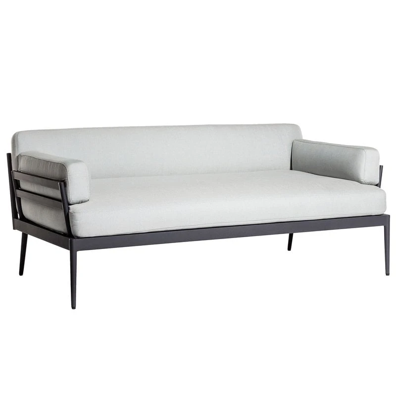 Anholt-sohva kuuluu Skargaardenin skandinaavisen pelkistettyyn modulaariseen ulkokalustesarjaan, jonka jäseniä yhdistää minimalistisen ilmeen lisäksi kestävät, helppohoitoiset materiaalit. Anholt-sohva on valmistettu lujasta alumiinista ja verhoiltu Sunbrella-kankaalla, joka on suunniteltu erityisesti ulkokäyttöön sopivaksi. Tummanharmaan metallin ja vaaleanharmaan kankaan yhdistelmä viehättää rauhallisuudellaan ja tuo pehmeyttä sohvan kulmikkaaseen muotoon.