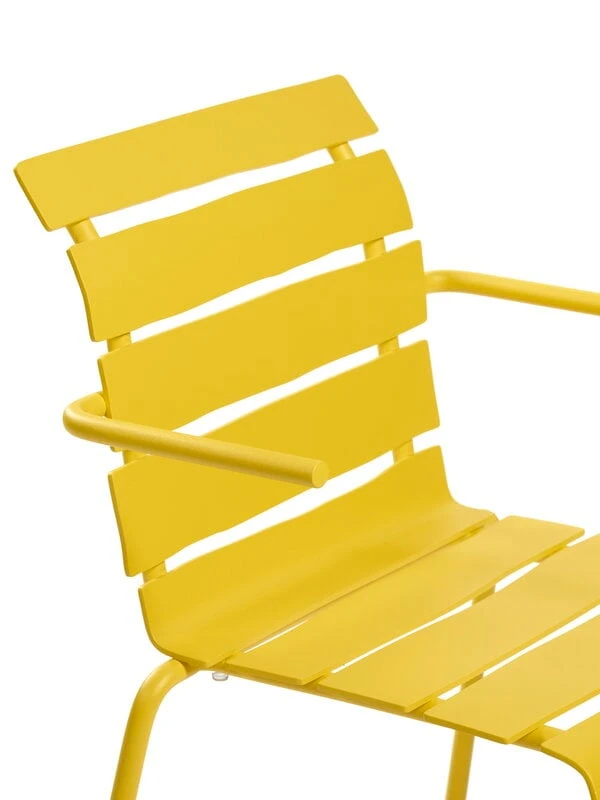 valerie objectsin käsinojallisen Aligned-tuolin näennäisen yksinkertainen ilme yllättää: epäsymmetriset, alumiinista valmistetut säleet antavat klassisen vähäeleiselle puutarhatuolille täysin uudenlaisen persoonan. Tunnetun hollantilaissuunnittelija Maarten Baasin kekseliäs ja leikkisä kädenjälki on vahvasti esillä jokaisessa yksityiskohdassa – Aligned-tuoli on luotu täsmällisesti Baasin lyijykynäpiirroksen pohjalta. Kaunis ja kestävä ulkokäyttöön soveltuva käsinojallinen tuoli sopii niin puutarhapöydän ääreen kuin kesämökin terassillekin ja sen hurmaavan persoonallinen ilme ihastuttaa vuodesta toiseen.