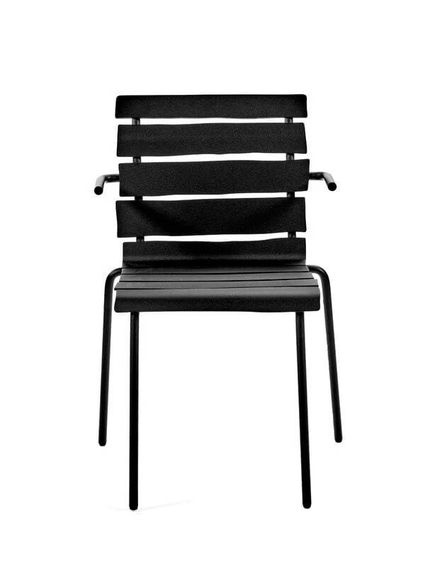 valerie objectsin käsinojallisen Aligned-tuolin näennäisen yksinkertainen ilme yllättää: epäsymmetriset, alumiinista valmistetut säleet antavat klassisen vähäeleiselle puutarhatuolille täysin uudenlaisen persoonan. Tunnetun hollantilaissuunnittelija Maarten Baasin kekseliäs ja leikkisä kädenjälki on vahvasti esillä jokaisessa yksityiskohdassa – Aligned-tuoli on luotu täsmällisesti Baasin lyijykynäpiirroksen pohjalta. Kaunis ja kestävä ulkokäyttöön soveltuva käsinojallinen tuoli sopii niin puutarhapöydän ääreen kuin kesämökin terassillekin ja sen hurmaavan persoonallinen ilme ihastuttaa vuodesta toiseen.